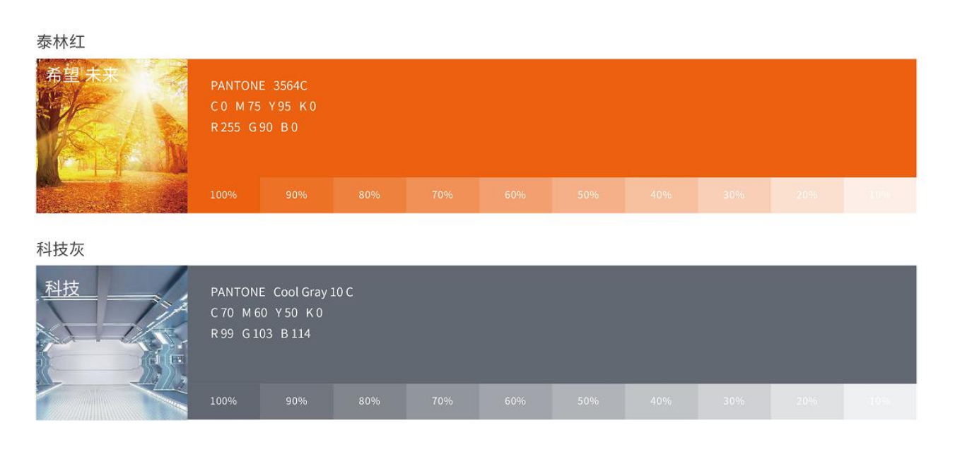 泰林色彩系統(tǒng)核心顏色為藍(lán)色,橘紅色和灰色作為輔助性色彩組合,此組合豐富了泰林的色彩話語體系,構(gòu)建出有寓意的品牌形象。