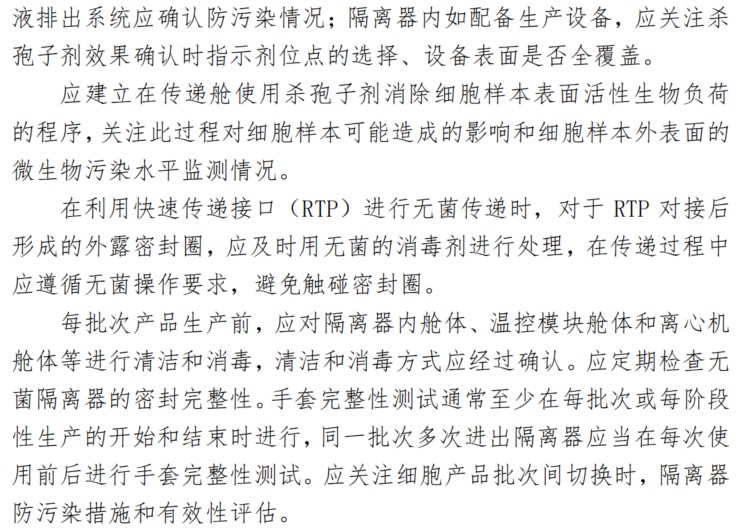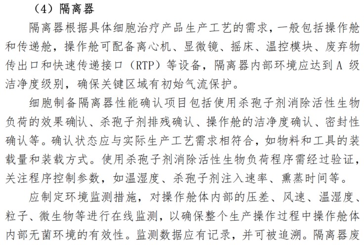 隔離器是細胞治療產(chǎn)品生產(chǎn)的常見設備,是無菌生產(chǎn)的必要條件,《指南》中對隔離器的要求主要包括以下幾個方面: